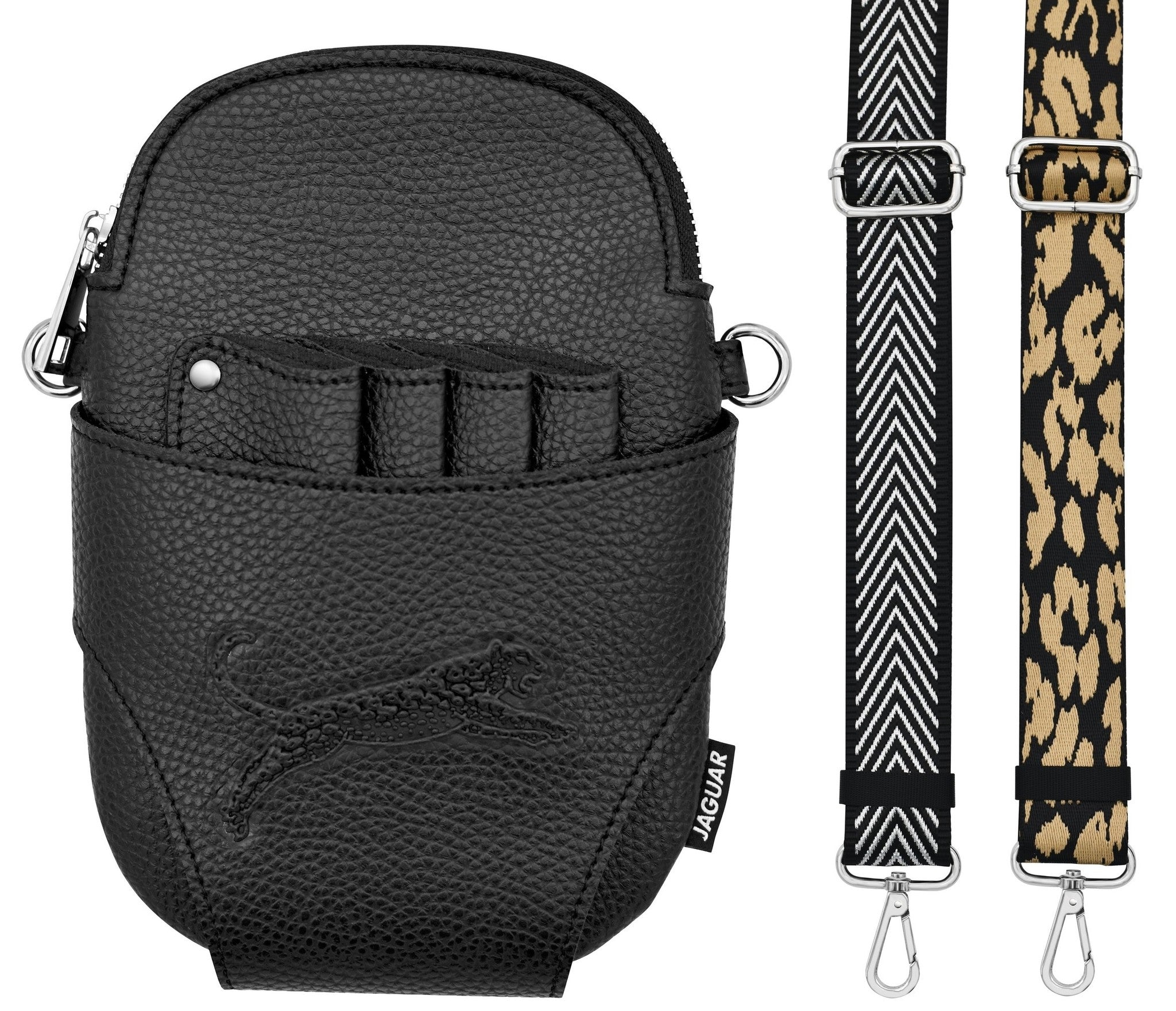 Jaguar Holster Crossbag Zwarte holster in leather look (grove nerf) met modieuze verwisselbare riemen in 2 verschillende uitvoeringen (ca. 4cm... Lees meer