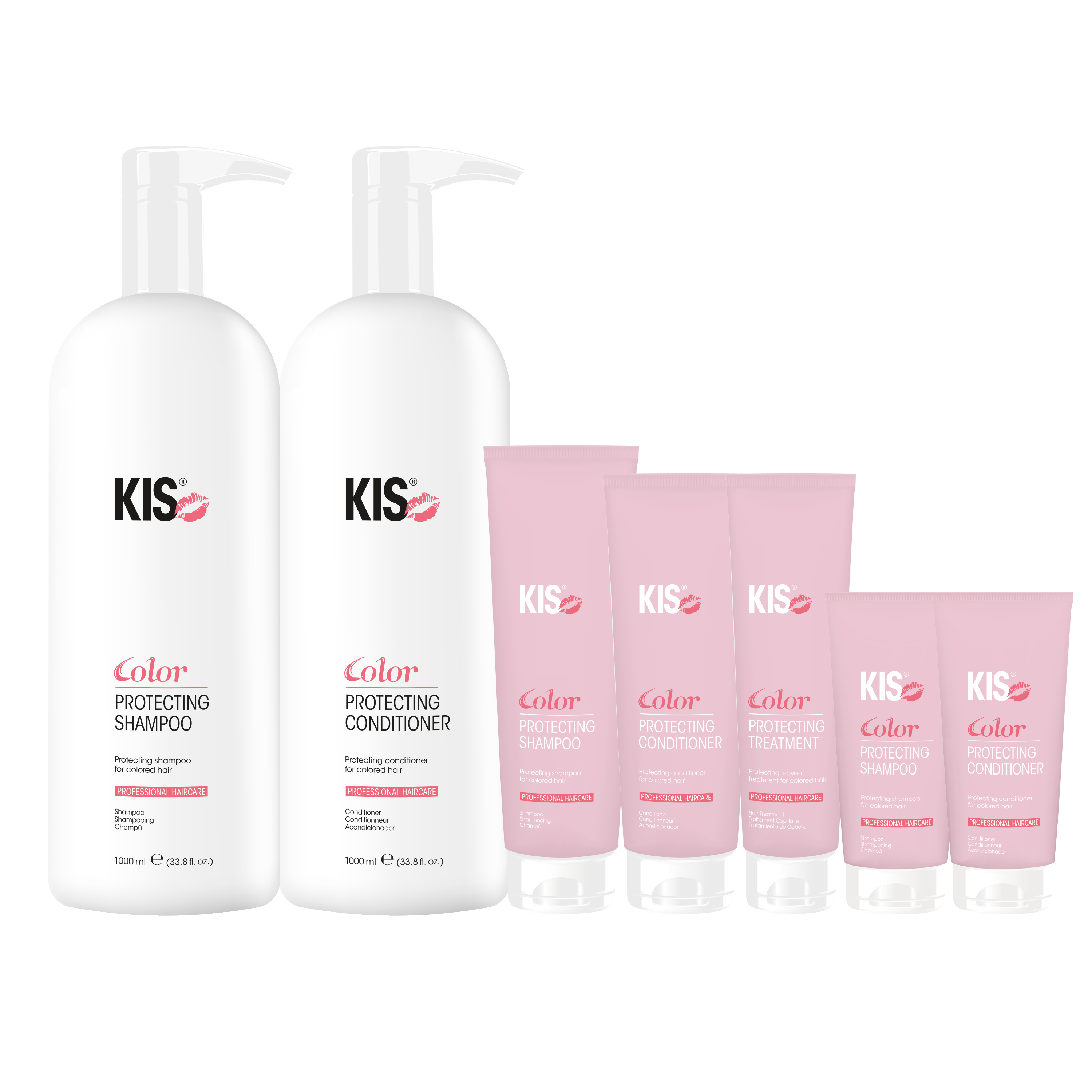 KIS Color Protecting: De shampoo, conditioner en treatment zijn perfect op elkaar afgestemd en verrijkt met slimme technologieën om kleurvervaging tegen te gaan. Je kleur blijft intens, je haar blijft levendig. For hair that speaks in color.