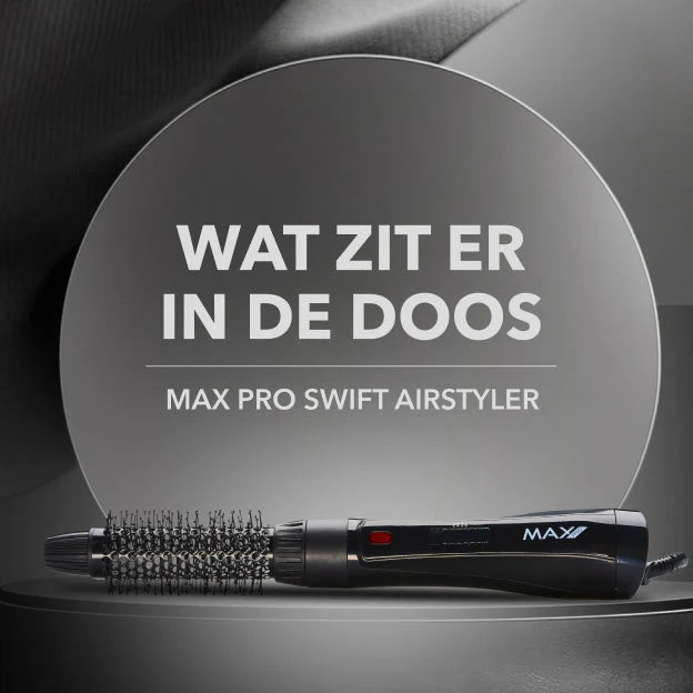 De Max Pro Swift Airstyler, een complete all-in-one stylingtool voor het creëren van gladde, volumineuze looks met perfecte krullen of een strakke blow-out. Deze veelzijdige airstyler is geschikt voor elk haartype en ideaal voor dagelijks gebruik of professioneel stylen.