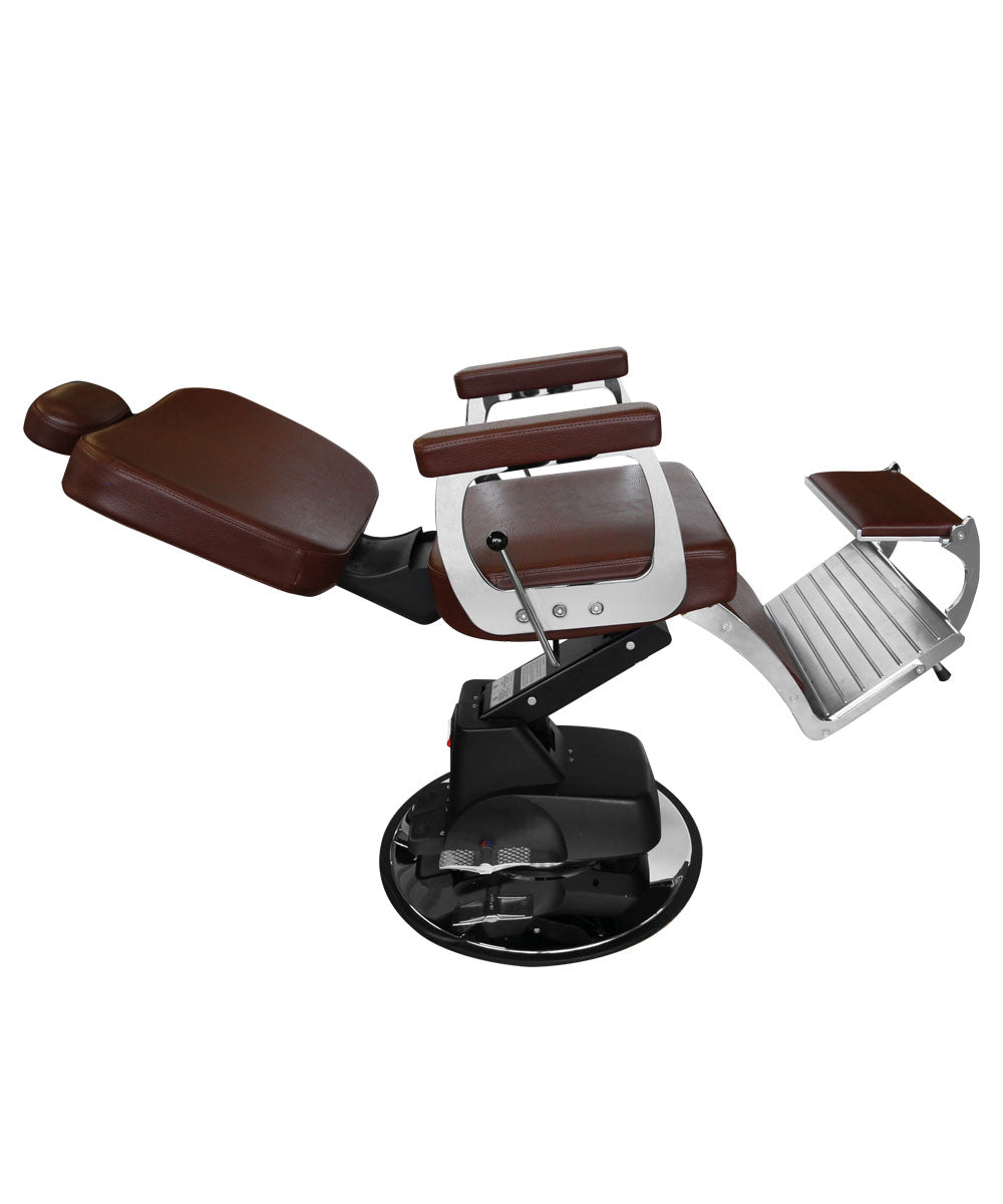 Met zijn klassieke design en verfijnde chromen details straalt de Elite direct luxe en professionaliteit uit. Tegelijkertijd is deze stoel volledig afgestemd op de nieuwste trends binnen men’s grooming en gezichtsverzorging. De rugleuning is verstelbaar tot maar liefst 147 graden, waardoor de stoel bijna horizontaal kan worden geplaatst – ideaal voor behandelingen zoals scheren en facials.