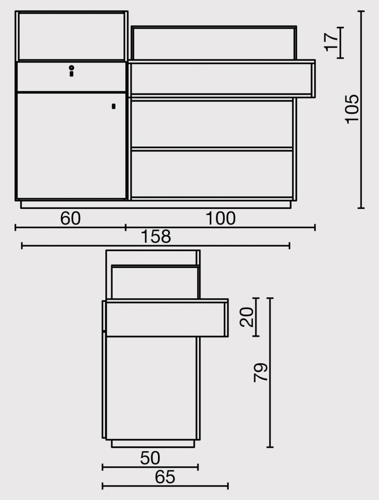 Maak een DISCOVERY reis voor een unieke stijl in uw ontvangstruimte! Het buitengewone receptiemeubel Discovery is modern, vernieuwend en bijzonder functioneel. De Discovery bestaat uit een centrale unit en een zijmeubel- dat links of rechts gemonteerd kan worden of ook beschikbaar alleen als centrale unit- en verrast met de combinatie van verschillende materialen: wit en elmwood melamine tezamen met glas worden gecombineerd met asymmetrische en geometrische vormen.