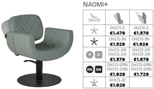 Salon Ambience Naomi+ Kappersstoel Let op, afhankelijk van uw order worden bijkomende vrachtkostenbijdrage achteraf apart gecalculeerd. De vrachtkosten variëren tussen... Lees meer