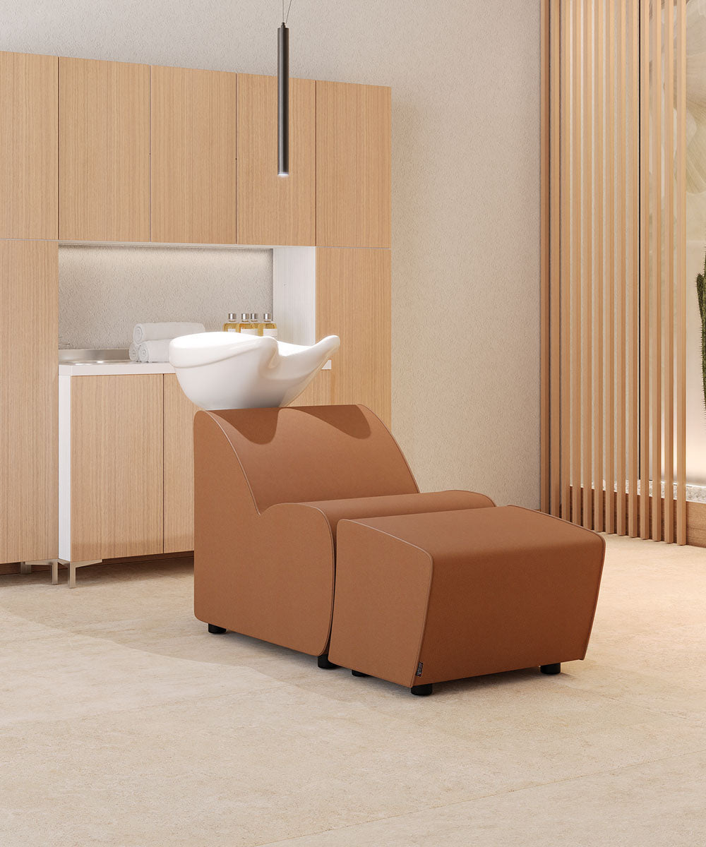 De Lunawash maakt deel uit van de Embrace lijn, waarin eenvoud en functionaliteit centraal staan. Het ontwerp is strak en zonder overbodige details, waardoor het geheel rustig oogt in de salon.